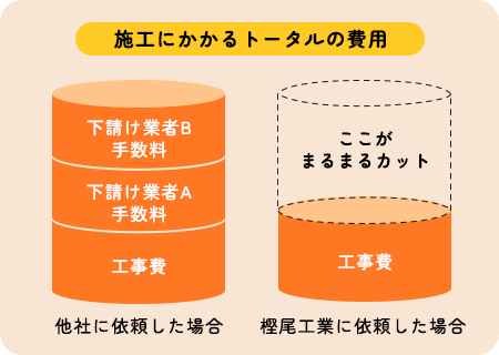 施工はすべて自社で行っているので下請け業者を通すことはありません。そのため余計な中間マージンがかからず費用を抑えることができます。